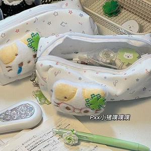 四叶草猫咪高颜值笔袋可爱幸运音符ins大容量桌面学生文具收纳袋