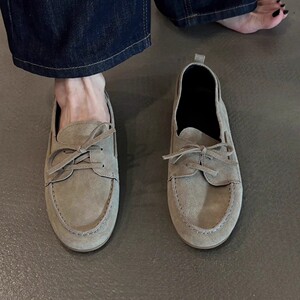 羊皮版~2025新款真皮复古老钱风圆头平底一脚蹬百搭乐福鞋女单鞋