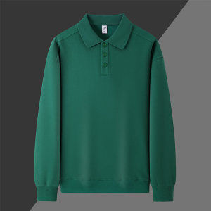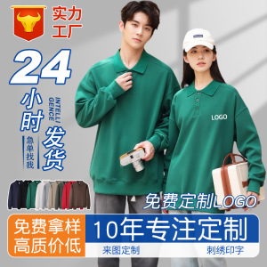 310g秋冬翻领卫衣长袖polo衫工作服印logo餐饮火锅服务员秋冬工装