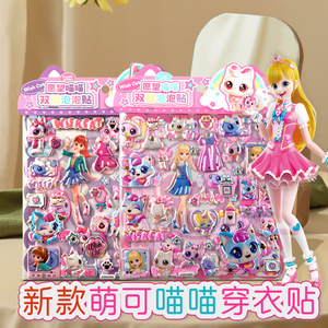 喵喵双层大号换装贴纸儿童手账拼贴穿搭素材儿童穿衣粘贴画美丽公