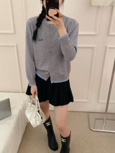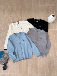 2025年秋冬季韩系时尚拼色长袖针织衫开衫长袖气质上衣打底毛衣女