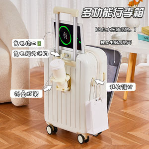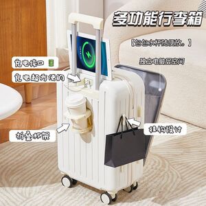 前开口行李箱女20寸新款登机多功能充电拉杆密码学生旅行皮箱子男