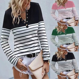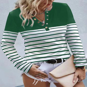 2025亚马逊速卖通wish跨境欧美女春秋宽松条纹印花新款长袖T恤女