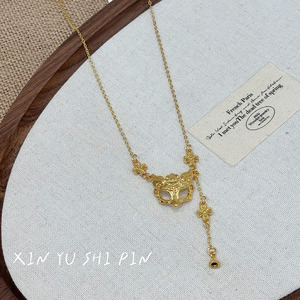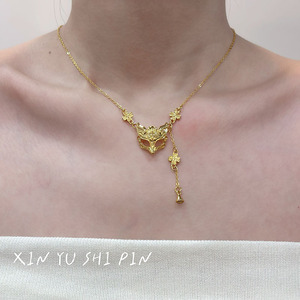 新中式复古金色狐狸面具项链女新款轻奢气质小众日常百搭锁骨链
