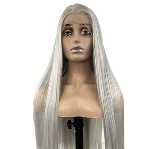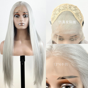 外贸银灰色假发长直发手勾前蕾丝13*4cos敖光全头套跨境批发