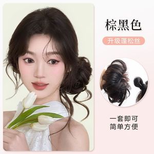 丸子头假发格雷系抓夹蝴蝶结龙须丸子头ins风气质高马尾低扎马尾