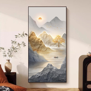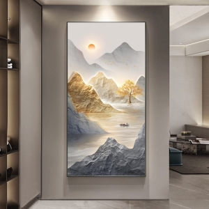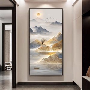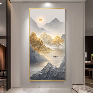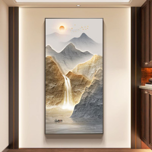 现代风景玄关装饰画寓意好led发光壁画山水画新中式走廊过道挂画