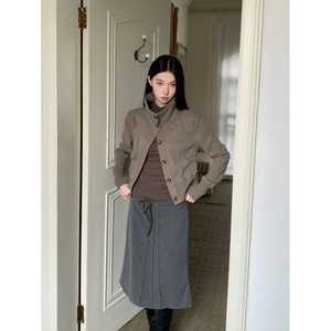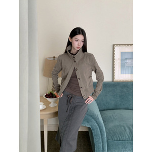 2025早秋系磨毛立领短款修身收腰都市感利落低饱和休闲夹克外套女