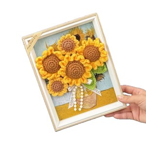 教师节礼物创意毛线花针织梵高向日葵相框送女老师桌面办公室摆件