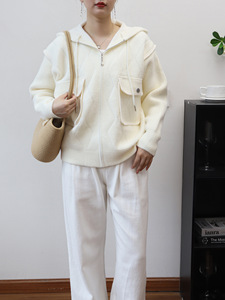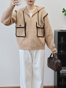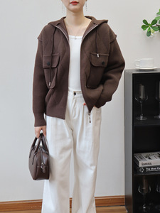 2025秋冬新款连帽拉链针织双面呢开衫韩版宽松休闲百搭毛衣外套女