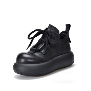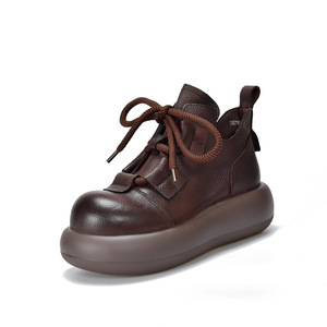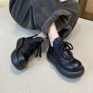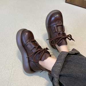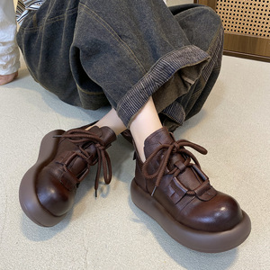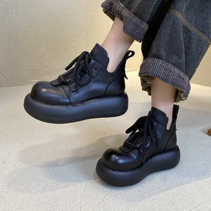 2025秋冬新款复古休闲百搭真皮短靴女式单靴头层牛皮厚底马丁靴女