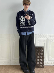 美式复古费尔岛慵懒风毛衣男秋冬季休闲宽松休闲针织情侣开衫外套