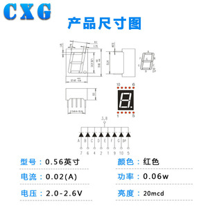 0.56英寸数码管1/2/3/4位数码管共阴/共阳高亮红色数码管显示器