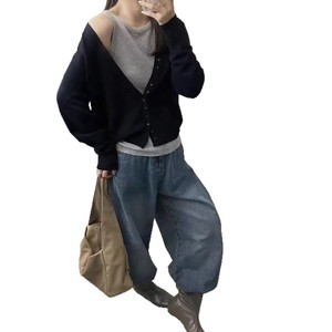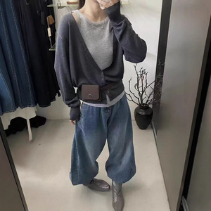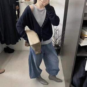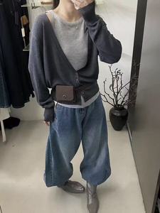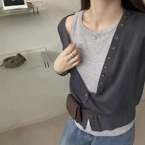 韩版高级感洋气简约百搭长袖V领针织开衫内搭背心两件套上衣女潮