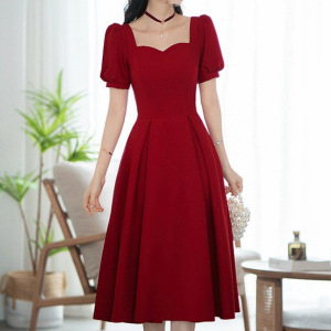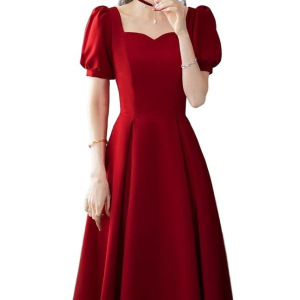 连衣裙夏季订婚礼服2025平时可穿结婚小个子酒红色新款敬酒服新娘