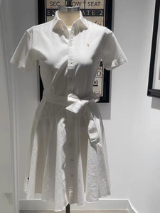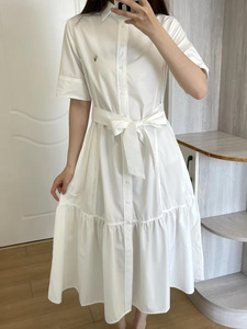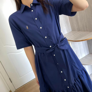 拉夫RL小马刺绣夏季新款棉通勤气质简约百搭翻领短袖开衫连衣裙