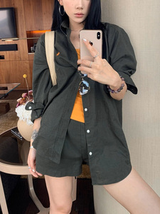 70不是七十游牧学者亚麻衬衫女秋老钱风韩系极简长袖上衣