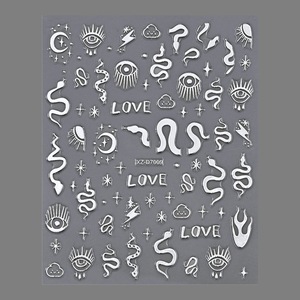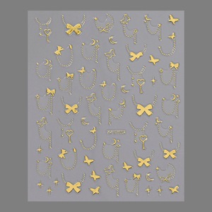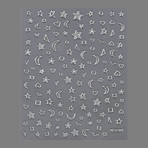 12张银色撞款美甲贴纸线条星月花朵爱心蝴蝶结烫银背胶美甲贴纸