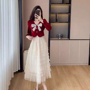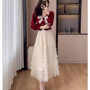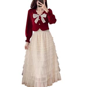 网纱秋套装女服小个子穿搭一整套蛋糕半身裙2025年上衣休闲两件套