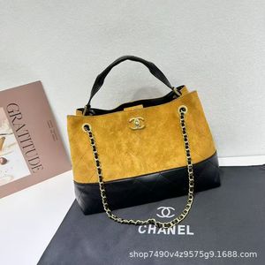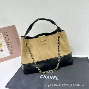 2025秋冬新款25a麂皮拼色托特流浪包通勤大容量链条腋下磨砂包女