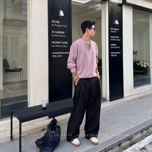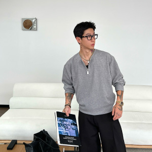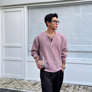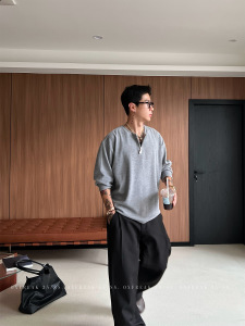 OXFREAK「混纱密歇根绒」老钱风褶皱半拉链长袖t恤男宽松内搭上衣