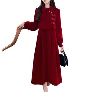 回门新中式改良旗袍大码礼服平时可穿女装敬酒服新娘红色订婚礼服