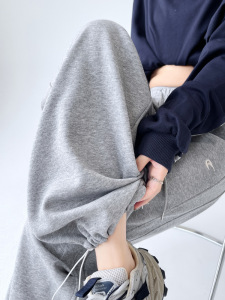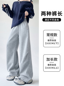 灰色运动裤女秋季阔腿休闲显瘦高腰宽松直筒秋冬美式复古工装裤