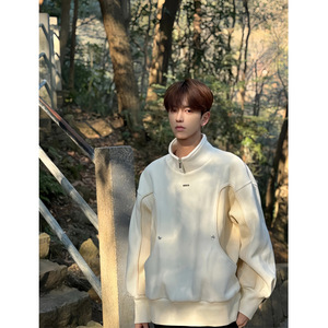 日系复古半拉链卫衣男秋冬款2025新款高级感针织拼接高领套头外套
