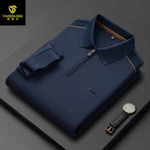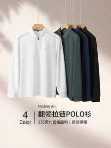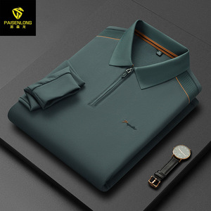 2025秋冬派森龙翻领拉链锦氨九宫格保罗长袖男POLO衫外贸高端t恤