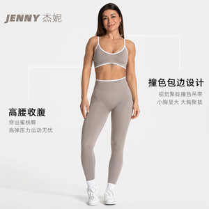 杰妮跨境新款运动套装女户外健身衣撞色防震吊带内衣瑜伽裤瑜伽服
