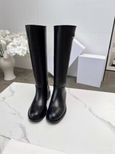 高版长靴女2025冬款真皮圆头百搭显瘦直筒骑士靴长筒一脚蹬马丁靴