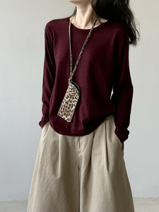 言双 韩系百搭多色圆领T恤女 秋季薄款内搭宽松长袖打底上衣P2506