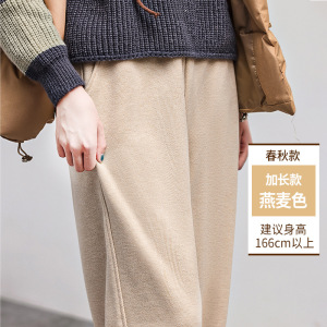 秋冬人字纹绵羊毛糯米阔腿裤女2025女秋冬新款窄版高腰显瘦直筒裤