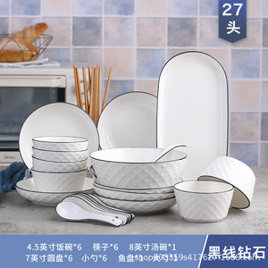钻石 6碗6盘6勺6筷1汤碗汤勺鱼盘