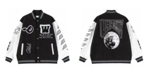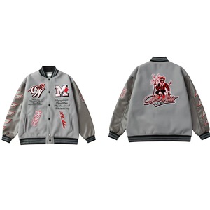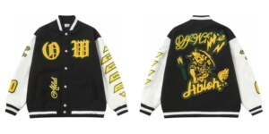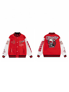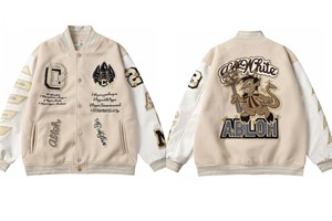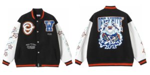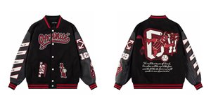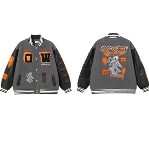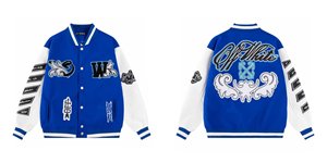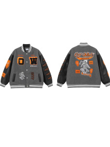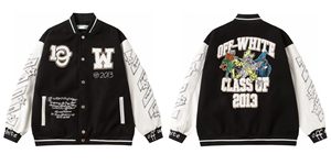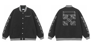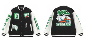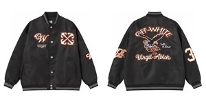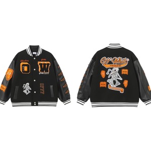 25新款OFF刺绣拼皮棒球服欧美潮牌男女青少年街头时尚夹克外套