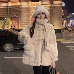 皮毛一体羊毛羔外套女冬2025新款皮草中长款宽松加绒加厚大衣棉服