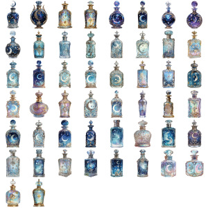 50张卡通月相之瓶水晶贴纸装饰DIY手账手机壳滑板PET跨境防水贴纸