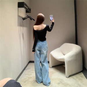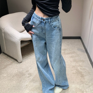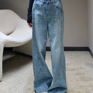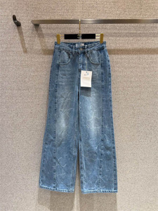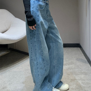 25秋季新款南油高定Cha简约休闲宽松鸡爪纹烧花拼接牛仔直筒裤