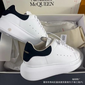 跨境海外专供麦昆头层皮透气小白鞋男女款增高厚底休闲板鞋