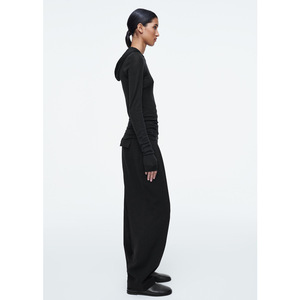 COS女装 修身版型羊毛针织连帽衫黑色长袖上衣新品1241793003