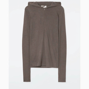 COS风羊毛针织连帽衫拇指扣长袖套头上衣半开襟拉链修身显瘦T恤女