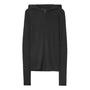 CS拉链连帽修身羊毛混纺打底衫半开襟拇指扣上衣