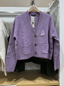 2025秋新款女装舒芙蕾V领针织短开衫/外套空调衫通勤毛衣478339