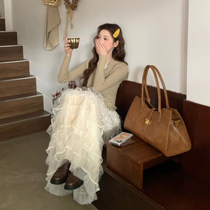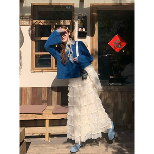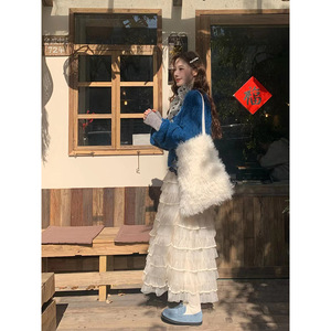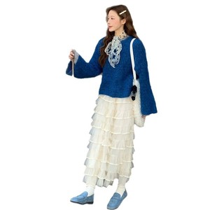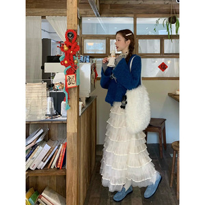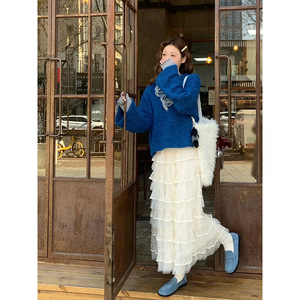 秋冬穿搭一整套装女韩系慵懒风V领套头毛衣搭休闲蛋糕蓬蓬半身裙