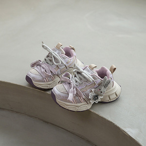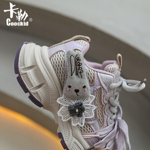 儿童运动鞋新款2025秋季双网透气女孩时尚休闲鞋卡通兔兔老爹鞋