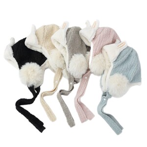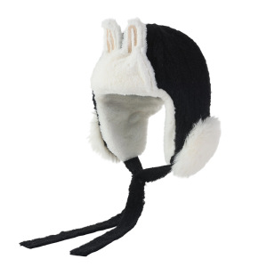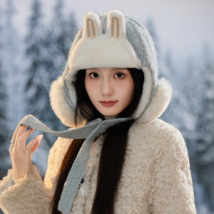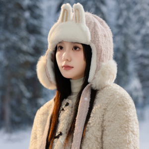毛茸茸保暖雷锋帽冬季帽子女款兔耳可爱百搭针织毛线帽护耳加绒帽