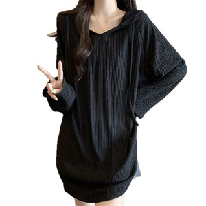 大码肌理感中长款连帽长袖t恤女2025早秋新款宽松显瘦时尚上衣女