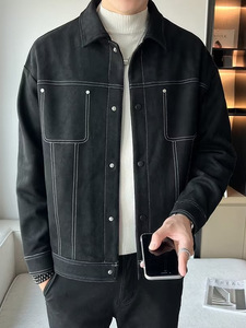 春秋季夹克男新款潮牌高级感休闲宽松痞帅麂皮绒翻领外套上衣男装