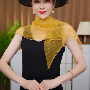 韩版新款烫钻丝巾时尚头巾夏季百搭女士围巾轻薄方巾镶钻高级丝巾