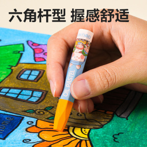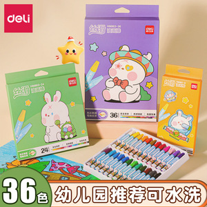 得力油画棒六角蜡笔安全无毒不脏手幼儿画笔12/24/36色油画棒批发